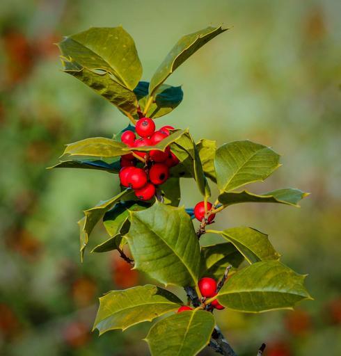 Keywords: holly ilex berries drupes christmas xmas evergreen decoration plant shrub tree holiday ornamental plant red berries