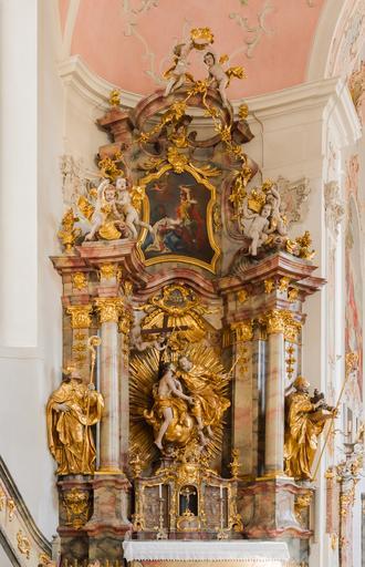 | Keywords: Holy Trinity altar, St Peter's and Paul's church, Oberammergau, Bavaria, Germany.jpg fr L'autel de gauche dédié à la Sainte-Trinité dans l'église Saints Pierre et Paul à Oberammergau Bavière Allemagne en The left altar dedicated to the Holy Trinity in the Saints Peter and Paul Chruch in Oberammergau Bavaria Germany 2013-10-20 own Jebulon 47 595675 11 068892 cc-zero Uploaded with UploadWizard St Peter und Paul Oberammergau Baroque altars in Upper Bavaria Statues of the Holy Trinity Statues of bishops in Germany Quality images by Jebulon QualityImage |