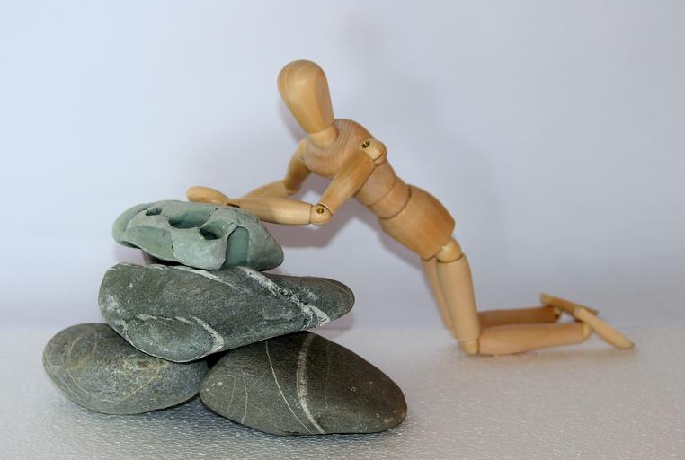 Keywords: holzfigur stones plunge fall fell down accident misfortune overthrown lying on the floor alone help resistance difficulties stones in the off life struggle stop insurmountable stuck