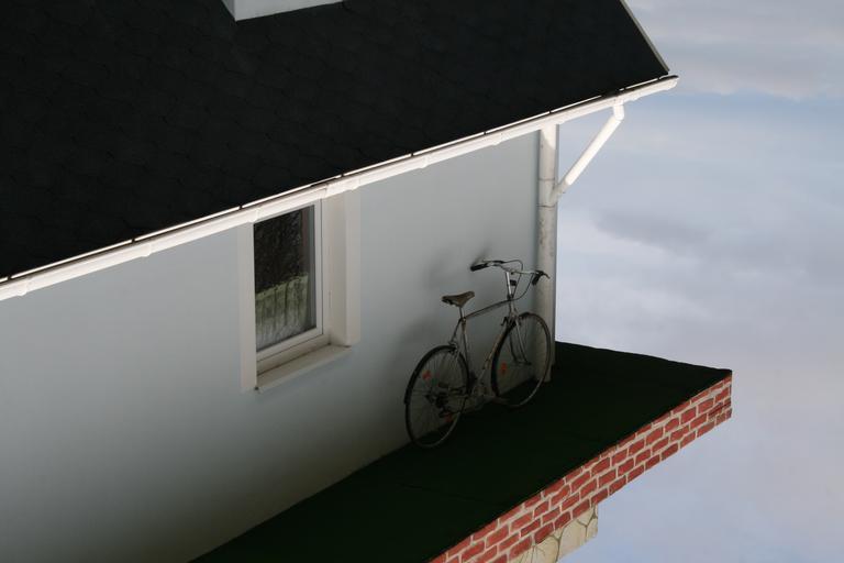 Keywords: home bike roof clouds facade sky building