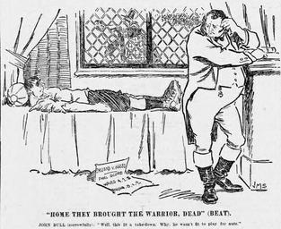 MAKE A MEME View Large Image Home they Brought the Warrior, Dead (Beat) - JM Staniforth.png en Cartoon by JM Staniforth John Bull mourns the defeat of the England national rugby union team by the hands of Wales in the 1899 Home Nations Championship Outside the window ...