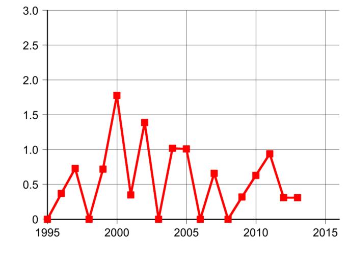 Keywords: Homicide Rate in Iceland.svg en Homicide rate per 100 000 in Iceland Data taken from http //www indexmundi com/facts/iceland/homicide-rate 2016-08-17 own Delphi234 other versions current annually Generated with Wikimedia SVG Chart SVG Chart/box cc-zero Homicide rates Diagrams labelled with numbers only Crime in Iceland |