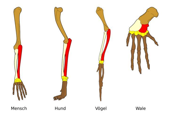 | Keywords: Homology vertebrates-de.svg  en The principle of homology The biological derivation relationship shown by colors of the various bones in the forelimbs of four vertebrates is known as homology and was one of Darwin s arguments in favor of evolution file Homology vertebrates svg Волков Владислав Пет ович Vladlen666 ; derivative by Angelito7 2011 original file ; 2013-12-09 this file Cc-zero Other versions/Homology vertebrates translation possible Anatomical plates and drawings of human bones Dog leg bones Bird wing bones Cetacea limb bones Animal limb bone comparisons |