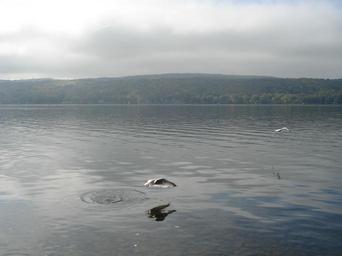 Keywords: Honeoye Lake.JPG en View of Honeoye Lake own Fijnlijn 2007-10-07 42 45 2 29 N 77 31 5 99 W region US Finger Lakes Larus delawarensis in flight Honeoye Lake