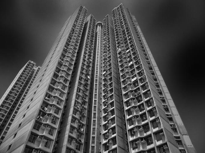 Keywords: hong kong china apartment apartments building skyscraper architecture outside black and white city urban