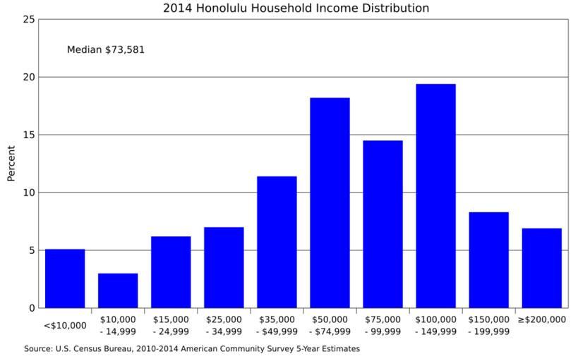 Keywords: Honolulu household income distribution.svg translate yes en Distribution of household income in Honolulu Hawaii in 2014 Data from http //factfinder census gov/bkmk/table/1 0/en/ACS/14_5YR/DP03/0500000US15003 US Census in 2014 inflation adjusted dollars 2016-06-02 own Delphi234 other versions cc-zero Income distribution in the United States Honolulu Hawaii 2014 in Hawaii |