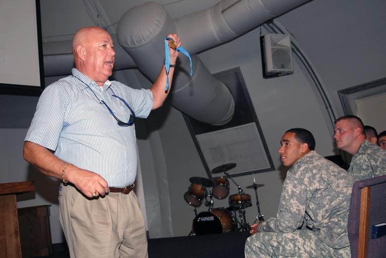 | Keywords: Honor, Valor, Courage DVIDS194942.jpg en Retired Army Sgt Maj Gary Littrell a Medal of Honor recipient removes his medal from his neck to pass around to service members at Joint Task Force Guantanamo July 29 Littrell travels the country telling his stories and the importance of patriotism leadership democracy and the history of the Medal of Honor JTF Guantanamo conducts safe humane legal and transparent care and custody of detainees including those convicted by military commission and those ordered released by a court The JTF conducts intelligence collection analysis and dissemination for the protection of detainees and personnel working in JTF Guantanamo facilities and in support of the War on Terror JTF Guantanamo provides support to the Office of Military Commissions to law enforcement and to war crimes investigations The JTF conducts planning for and on order responds to Caribbean mass migration operations 2009-07-29 Petty Officer 1st Class Richard Wolff https //www dvidshub net/image/194942 090729-N-+++++-028 2009-08-14 11 09 GUANTANAMO BAY CU PD-USGov-Military-Navy Joint Task Force Guantanamo Guantanamo Bay Images from DoD uploaded by Fæ |