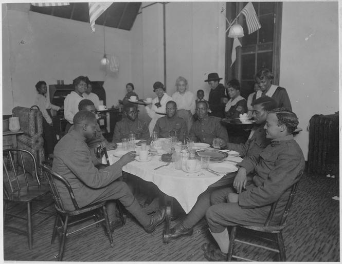 Keywords: Honoring men about to leave for camps. (African American) women caring for their own. Newark, New . . . - NARA - 533585.tif Scope and content The full caption for this item is as follows Honoring men about to leave for camps African American women caring for their own Newark New Jersey General notes 533585 Local identifier 165-WW-127 93 War Department 1789 - 09/18/1947 Still Picture Records Section Special Media Archives Services Division NWCS-S National Archives at College Park 8601 Adelphi Road College Park MD 20740-6001 1917 - ca 1919 Record group Record Group 165 Records of the War Department General and Special Staffs 1860 - 1952 Record group ARC 494 American Unofficial Collection of World War I Photographs compiled 1917 - 1918 Series ARC 533461 File unit File unit ARC Variant control numbers NAIL Control Number NWDNS-165-WW-127 93 yes Other versions NARA-cooperation PD-USGov New Jersey in the 1910s African American soldiers Doughboys United States Army soldiers Black and white photographs of men eating History of Newark New Jersey