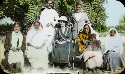 Keywords: Hope Lee and Indian group, India, ca. 1915 (IMP-CSCNWW33-OS15-50).jpg en <br> Hope Lee and Indian group India ca 1915 Tinted lantern slide showing Regions Beyond Missionary Union missionary Miss Hope Lee with a group of two Indian men four women and one child This slide comes from a collection created by missionaries from Regions Beyond Missionary Union an interdenominational Protestant evangelical mission working in northeast India Bihar and Orissa and Nepal Photographer Unknown Subject personal name Lee Hope Filename IMP-CSCNWW33-OS15-50 tif Coverage date 1910/1920 Subject unesco Missionary work Part of collection International Mission Photography Archive ca 1860-ca 1960 Part of subcollection Photographs from the Centre for the Study of World Christianity University of Edinburgh U K ca 1900-ca 1940s Subject corporate name Regions Beyond Missionary Union Repository name Centre for the Study of World Christianity Archival file Volume4/IMP-CSCNWW33-OS15-50 tif Repository address The University of Edinburgh School of Divinity New College Mound Place Edinburgh EH1 2LX United Kingdom Geographic subject country India Format aacr2 lantern slides 8 2 x 8 2cm Geographic subject continent Asia Rights Contact the repository for details Part of series Regions Beyond Missionary Union India mixed lantern slides CSCNWW33/OS15 Repository email divinity-CSWC ed ac uk Date created 1910/1920 Publisher of the digital version University of Southern California Libraries Subject aat genre group portraits Format aat lantern slides; photographs Geographic subject state Bihar Access conditions http //www ed ac uk/schools-departments/divinity/research/centres/world-christianity/collections-resources Geographic subject populated places File CSCNWW33/OS15/50 Subject lcsh Women missionaries 1910/1920 date created author http //digitallibrary usc edu/cdm/ref/collection/p15799coll123/id/78319 PD-old-70-1923 Magic lantern images Images from USC Digital Library uploaded by Fæ International Mission Photography Archive ca 1860-ca 1960 Missionaries in India |