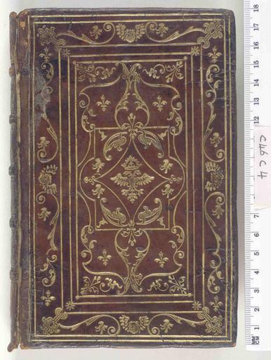 | Keywords: Hore beate Marie Virginis ad vsum fratrum predicatorum, - Upper cover (c46c4).jpg  Style Armorial Panel design Cherubs head Bird motif Azured or hatched motifs; Caption Upper cover; Colour Brown; Edge Unspecified exhibition history Decorative Technique Tooled in gold; Cover Material Goatskin includes morocco turkey etc Mid century Paris bound for Cardinal de Granvelle 1517-1586 as the central crowned eagle suggests 6 bindings groups all kept in Besançon Library France have been formed A 1 binding Besançon Library R Pole Pro ecclesiasticae unitatis defensione ¦ Rome no date This atelier worked for J Grolier and Francis I B 8 bindings excluded the present one Group featured by brown calf cover decorated with strapwork solid tools and one a two-headed crowned eagle The BL binding pertains therefore to this group M Piquard Les livres du Cardinal de Granvelle 1942 pl V Of these 8 volumes 7 are provided with a lozenge-rectangle decoration and concern Greek manuscripts Besançon Library shelfmark MSS 405 406 408 484 835 841 847 One of them a text of Jamblique has been copied in 1548 by the scribe Jean Mavromate its cover appears contemporary The eighth example J Driedo De concordia libri arbitrii ¦ Lovanii Gravius 1547 is of a different decoration but should be issued fron the same atelier C 3 bindings Calf provided with solid and azured tools No ownership mark Only the title on the edge indicates they were owned by cardinal Granvelle This atelier worked for J Grolier D 3 bindings Wax mosaic Produced c 1555-1560 E 2 bindings Current calf bindings Few contain Granvelle ex libris The title is always on the edge F 1 binding Different from all other groups as it was bound before being offered to Granvelle It contains A Brucioli I Sacri psalmi di David Venice 1534 For another French Renaissance binding provided with an analogous crowned eagle as presentation cover for Charles V and bound for Maximilian I see One hundred and seventy-six historic and artistic book-bindings p 22 XVI th century ms on vellum object history Text 1542; Paris; Granvelle Antoine Perrenot de Cardinal 1517-1586 object type Cc-zero place of creation Binding France place of discovery Unspecified British Library image http //www bl uk/catalogues/bookbindings/LargeImage aspx RecordId 020-000006594 ImageId ImageId 42902 Copyright BL Hore beate Marie Virginis ad vsum fratrum predicatorum Uploaded with GWToolset Hore beate Marie Virginis ad vsum fratrum predicatorum - Upper cover c46c4 http //www webarchive org uk/bldatasets/bindings/4046_4 jpg Bookbinding 16th-century bookbinding British Library Bookbindings |