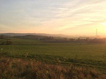Keywords: horizon nature sunset sky clouds west sun rays orange evening light heaven yellow meadow landscape