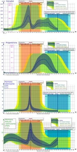 | Keywords: Hormones estradiol, progesterone, LH and FSH during menstrual cycle es.svg Reference ranges for the blood content of the hormones estradiol the main estrogen progesterone follicle-stimulating hormone and luteinizing hormone during the menstrual cycle Rangos de referencia en sangre para el contenido de la hormona estradiol el principal estrógeno progesterona hormona foliculoestimulante y hormona luteinizante durante el ciclo menstrual 2012-08-23 archivo original User Mikael Häggström Hormones estradiol progesterone LH and FSH during menstrual cycle pt svg cc-zero Uploaded with UploadWizard Progesterone Sex hormones Menstruation Follicle-stimulating hormone |