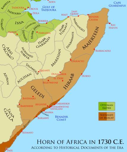 Keywords: Horn1730ad.png Horn of Africa c 1730 C E Own Ingoman Maps of the history of Somalia Maps showing 18th-century history Africa in the 18th century