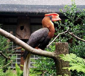 Keywords: hornbill bucerotidae bird brown black road zoo enclosure