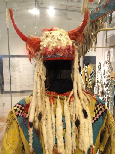 | Keywords: Horned bonnet of weasel skins, worn by Grass Dance leader, Blackfoot, Alberta, c. 1900, with ceremonial shirt, Blackfoot, c. 1880 - Royal Ontario Museum - DSC00325.JPG Exhibit in the Royal Ontario Museum Toronto Ontario Canada Photography was permitted in the museum I took this photograph and release it into the public domain Daderot 2011-11-21 13 29 04 Daderot cc0 cc0 Collection of anthropology of the First Peoples Gallery Royal Ontario Museum Ermine headgear Ermine clothing Blackfoot Fur costumes Fur fashion in 1900 |