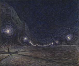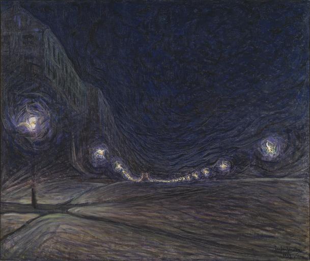 | Keywords: Hornsgatan by Night (Eugène Jansson) - Nationalmuseum - 18873.tif Artwork Creator Eugène Jansson Hornsgatan by Night Eugène Jansson was a landscape artist who painted city views He is most famous for his nocturnal views in deep-blue shades where the streetlights blend with other elements of the urban scene in a way that makes familiar places seem foreign and new In Hornsgatan at Night the gaslights create swirls and waves along the empty Stockholm street Eugène Jansson var landskapsmålare i staden Mest känd är han för sina nattliga vyer i djupt blå färger där ljuset från gatlyktor smälter samman med andra av stadsrummets delar på ett sätt som kommer bekanta miljöer att framstå som främmande Som i Hornsgatan nattetid där gasbelysningen skapar virvlar och vågmönster på den tomma Stockholmsgatan header Eugène Jansson was a landscape artist who painted city views He is most famous for his nocturnal views in deep-blue shades where the streetlights blend with other elements of the urban scene in a way that makes familiar places seem foreign and new In Hornsgatan at Night the gaslights create swirls and waves along the empty Stockholm street Eugène Jansson var landskapsmålare i staden Mest känd är han för sina nattliga vyer i djupt blå färger där ljuset från gatlyktor smälter samman med andra av stadsrummets delar på ett sätt som kommer bekanta miljöer att framstå som främmande Som i Hornsgatan nattetid där gasbelysningen skapar virvlar och vågmönster på den tomma Stockholmsgatan 1902 Olja på duk Size cm 182 152 Framed Size cm 188 156 5 Institution Nationalmuseum Stockholm Signerad Eugène Jansson 1902 accession number 18873 NM 1869 place of creation Erik Cornelius / Nationalmuseum Nationalmuseum Stockholm cooperation project Licensed-PD-Art PD-old-auto PD-Nationalmuseum_Stockholm 1915 Media contributed by Nationalmuseum Stockholm 2016-10 Paintings in the Nationalmuseum Stockholm Eugène Jansson |