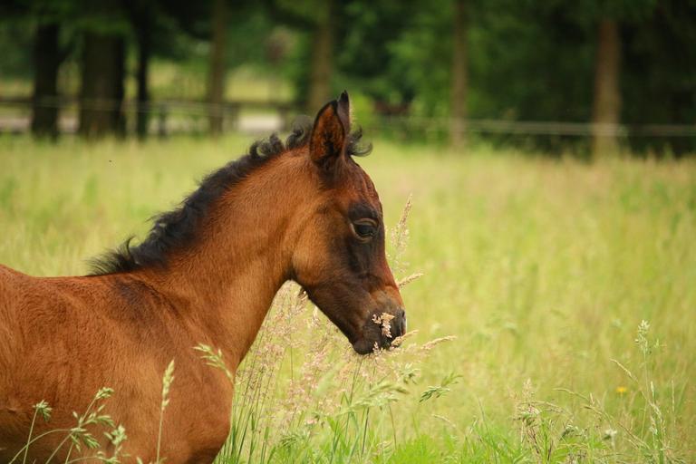 Keywords: horse foal suckling brown mold thoroughbred arabian pasture meadow grass