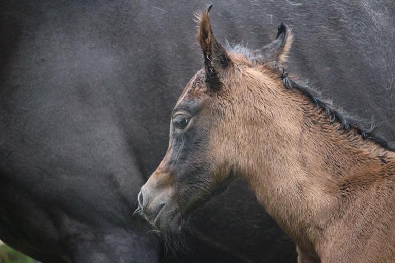 Keywords: horse foal suckling brown mold thoroughbred arabian horse head