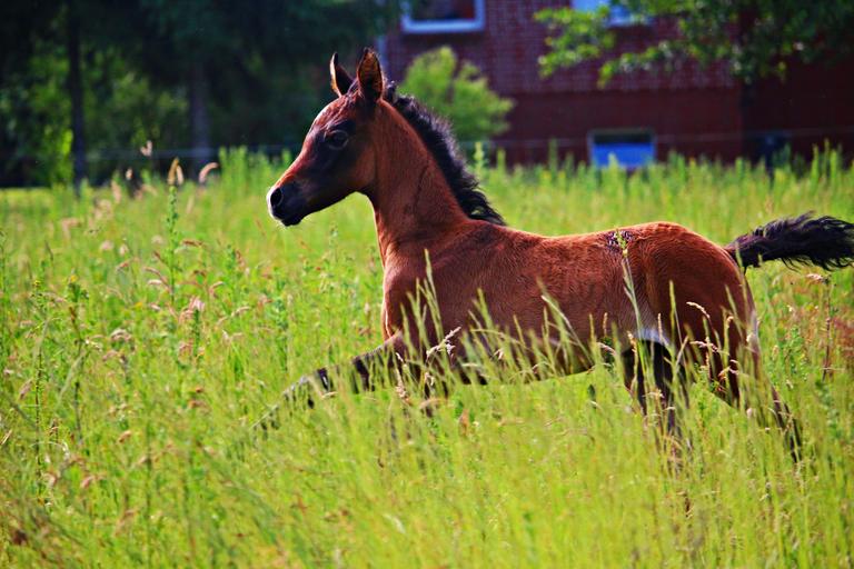 Keywords: horse foal thoroughbred arabian brown mold pasture gallop