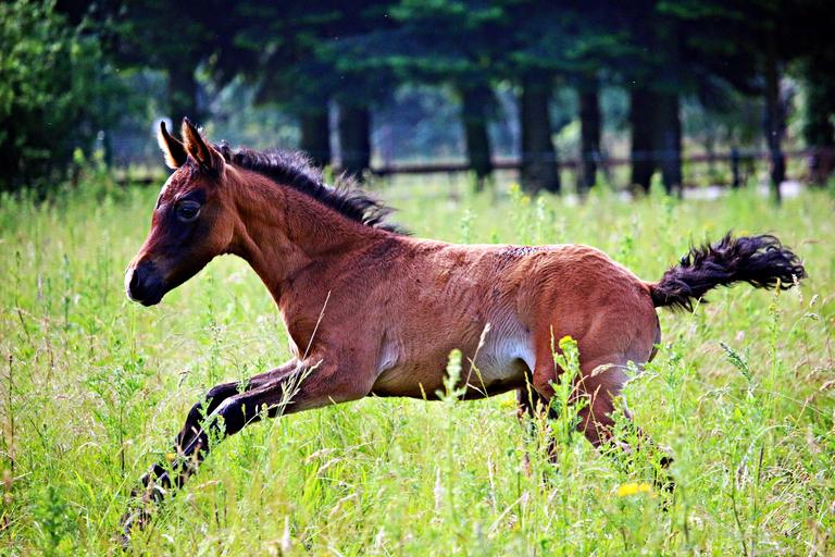 Keywords: horse foal thoroughbred arabian brown mold pasture gallop
