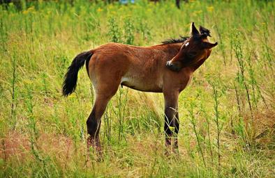 Keywords: horse foal thoroughbred arabian brown mold horse head grass pasture suckling meadow