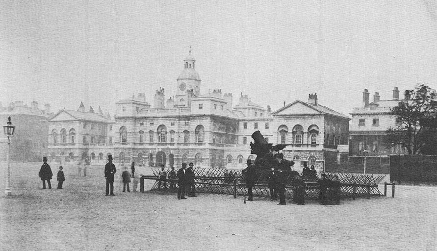 Keywords: Horse Guards Parade 1860.jpg Horse Guards Parade in 1860 https //www flickr com/photos/31363949 N02/8593907925/in/pool-1665942 N21/ 1860 Creator Roger Fenton Horse Guards Parade Roger Fenton Cádiz Memorial London PD-old-100