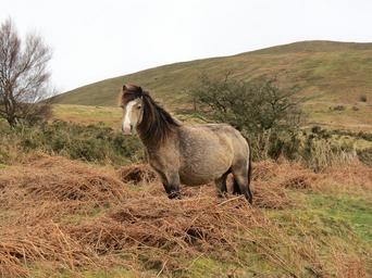 Keywords: horse hillside grass grazing pasture landscape animal meadow mammal grassland outdoors cute animals brown countryside field nature hill