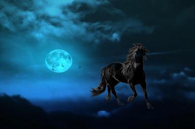 Keywords: horse moon clouds night freedom fog blue