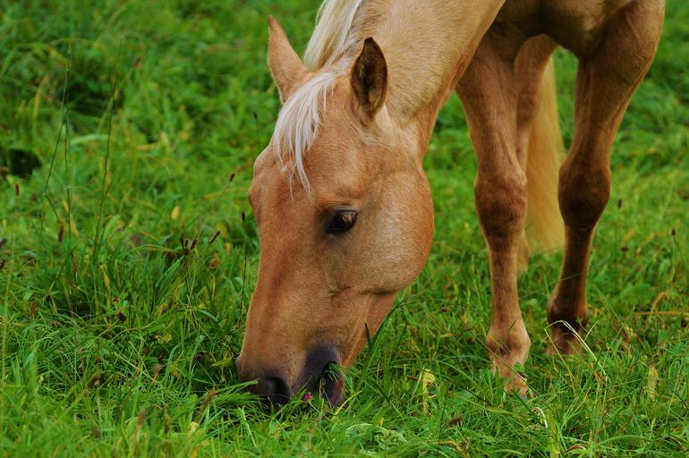 Keywords: horse pasture meadow graze animal world light brown horse head ride animal idyll paddock