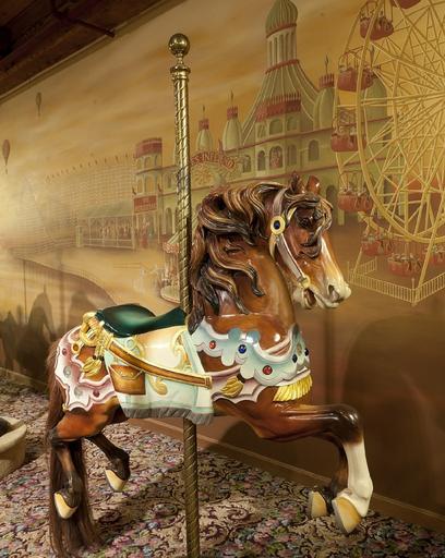 Keywords: horse wooden carousel retro nostalgic merry-go-round vintage colorful fun childhood