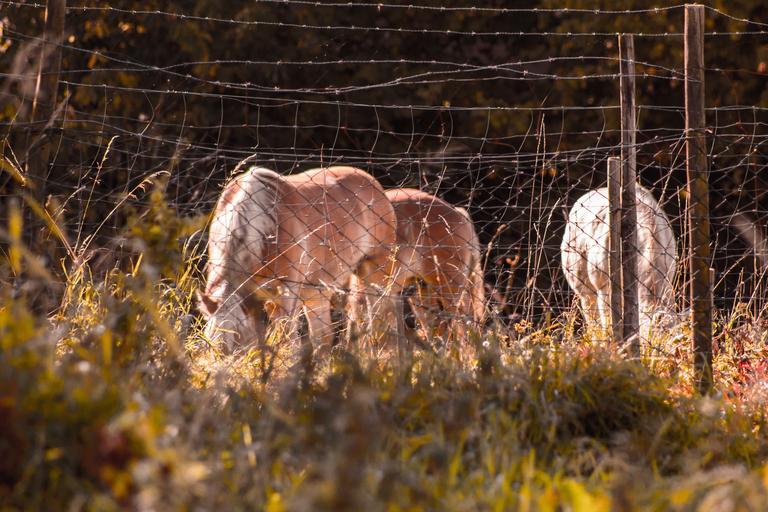Keywords: horses eat haflinger meadow fence barbed wire animal world grass mammal mane