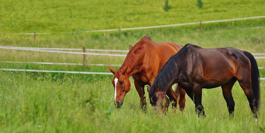 MAKE A MEME View Large Image horses for two coupling stallion eat paddock brown meadow pasture graze nature grass green play romp