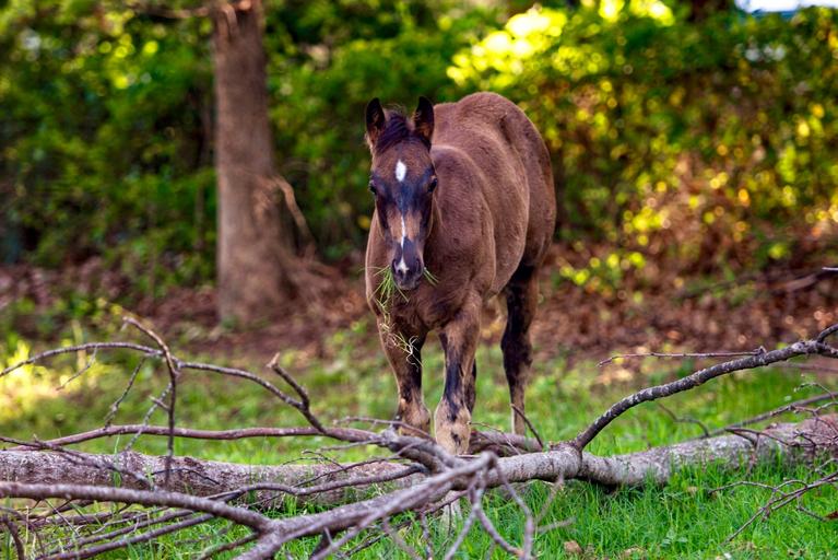 Keywords: horses nature animals eatting grass pasture forest