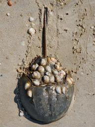 | Keywords: Horseshoe crab with shells 2.JPG  en Horseshoe crab with sea shells attached to its shell Photo taken near Villas New Jersey on Delaware Bay Crab was apparently dead when the photo was taken but the tracks in the sand seem pretty fresh 2012-05-29 own Smallbones 39 01 09 N 74 56 50 W cc-zero Limulus polyphemus Delaware Bay Unidentified Mollusca Uploaded with UploadWizard |