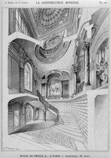 | Keywords: Hotel du Prince.jpg Hotel Roland Bonaparte 10 avenue d'Iena Paris Baroque façade Stairs and winter garden by architect M Ernest Janty 1896 PD-old Staircases in Paris Railings in Île-de-France Interior stair railings Roland Bonaparte Paris in the 1890s Avenue d'Iéna Paris |
