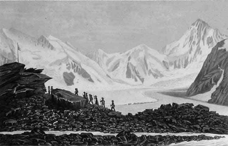 Keywords: Hotelneuchatelois2.jpg Hôtel des Neuchâtelois sur la mer de glace du Lauteraar et Finsteraar Côté septentrional - C'était ainsi qu'était nommé un bloc sur la moraine où l'équipe de Louis Agassiz séjournèrent lors de leur expédition scientifique sur le glacier de l'Unteraar en Suisse Etudes sur les glaciers Agassiz 1840 - image from http //www antiqbook com/boox/alt/GR454 shtml 1840 Bettannier / De Nicolet Authors died more than 70 y ago PD-Art Glaciers of Switzerland Snow in Switzerland Joseph Bettannier Louis Agassiz Unteraargletscher Finsteraarhorn ImageNote 1 628 51 69 72 750 482 2 Finsteraarhorn 4274 m ImageNoteEnd 1 ImageNote 2 446 133 61 46 750 482 2 Studerhorn 3634 m ImageNoteEnd 2 ImageNote 3 306 152 39 32 750 482 2 Altmann 3462 m ImageNoteEnd 3 |
