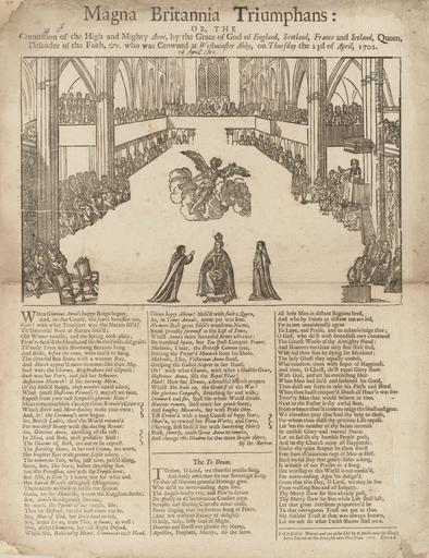 Keywords: Houghton EB65 A100 B675b v.5 - Magna Britannia triumphans.jpg en Broadside Magna Britannia triumphans or The coronation of the high and mighty Anne by the grace of God of England Scotland France and Ireland queen defender of the faith c who was crowned at Westminster abby on Thursday the 23d of April 1702 Publication informatioN Printed and are to be sold by E Mallet next the King's Arms tavern on the ditch-side near Fleet-street London 1702 46 x 36 cm http //id lib harvard edu/aleph/006075879/catalog EB65 A100 B675b v 5 Houghton Library Harvard University 1702 http //id lib harvard edu/aleph/006075879/catalog EB65 A100 B675b v 5 Houghton Library Harvard University<br /> institution Houghton Library E Mallet printer This is a media file that Houghton Library believes to be in the public domain of the United States This applies to a work published before January 1 1923 or the unpublished work of an author who died more than 70 years ago Houghton Library and Harvard University claim no rights in this photographic reproduction of the work and the image is free to download and reproduce for any use commercial or non-commercial without any further permission required We request that where these media files are used the Houghton Library is credited as the source of the materials Please include this citation EB65 A100 B675b v 5 Houghton Library Harvard University as its source In the event that any of the media files infringes your rights or the rights of any third parties or file is not properly identified or acknowledged we would like to hear from you so we may make any necessary alterations In this event please contact Houghton_Library harvard edu other versions Custom license marker 2014 11 12 PD-old-100 Uploaded with UploadWizard Broadsides Anne of Great Britain Media in the Houghton Library Harvard University |