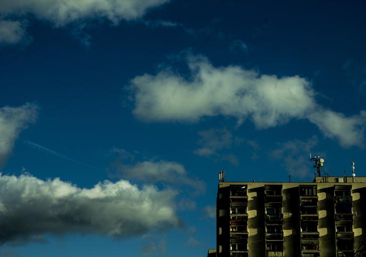 Keywords: house blue sky clouds contrast building estate day europe weather city architecture