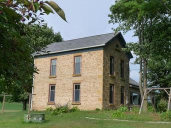 Keywords: House in Honey Creek Swiss Historic District.jpg en This house in Sauk County Wisconsin is in the Honey Creek Swiss Rural Historic District The sunrise attic window and the block-and-stack masonry on the front side are characteristic of some houses in the district built in the late 1800s The district is listed on the National Register of Historic Places own Jeff the quiet 2014-08-01 89000484 Cc-zero Sauk County Wisconsin Housing National Register of Historic Places in Sauk County Wisconsin Masonry