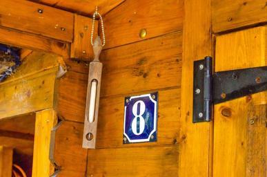 Keywords: house number number house entrance building blue caption digit decoration metal tile eight steel wooden thermometer thermometer measure temperature air temperature aussentempteratur garden degrees celsius scale degree weather