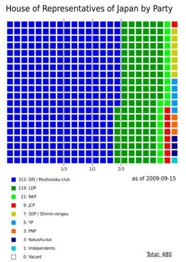 Keywords: House of Representatives of Japan - by Party (EN).svg House of Representatives of Japan by Party File House of Representatives of Japan - by Party JA svg http //www shugiin go jp/itdb_annai nsf/html/statics/syu/kaiha_m htm 会派名及び会派別 属議員数 First 12 16 4 August 2007 UTC kahusi <small> 話 </small> File House of Representatives of Japan - by Party JA svg Translation possible ImageNote 1 undefined undefined undefined undefined 650 915 2 Democratic Party of Japan ImageNoteEnd 1 ImageNote 2 undefined undefined undefined undefined 650 915 2 Liberal Democratic Party ImageNoteEnd 2 ImageNote 3 undefined undefined undefined undefined 650 915 2 NEW KOMEITO ImageNoteEnd 3 ImageNote 4 undefined undefined undefined undefined 650 915 2 Japanese Communist Party ImageNoteEnd 4 ImageNote 5 undefined undefined undefined undefined 650 915 2 Social Democratic Party ImageNoteEnd 5 ImageNote 6 undefined undefined undefined undefined 650 915 2 Your Party ImageNoteEnd 6 ImageNote 7 undefined undefined undefined undefined 650 915 2 People's New Party ImageNoteEnd 7 House of Representatives of Japan |