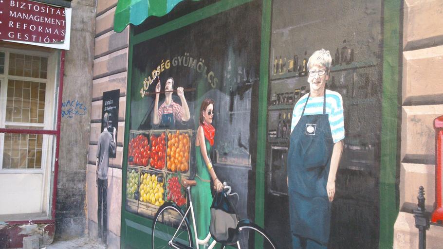 Keywords: house wall graffiti picture mural art budapest street view fruit and vegetable