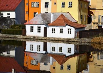 Keywords: houses colors water reflection south bohemia sun pond surface architecture