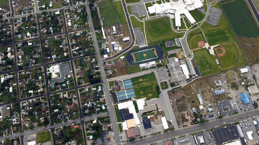 Keywords: houses urban urbanisation bird's eye view city aerial view fields aerial scenic scene outdoor cityscape bird's-eye landscape