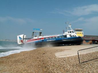Keywords: hovercraft closeup ferry coast shore cushion nautical seaside craft travel departure service ship vehicle technology crossing close-up departing southsea transport beach hampshire england passenger