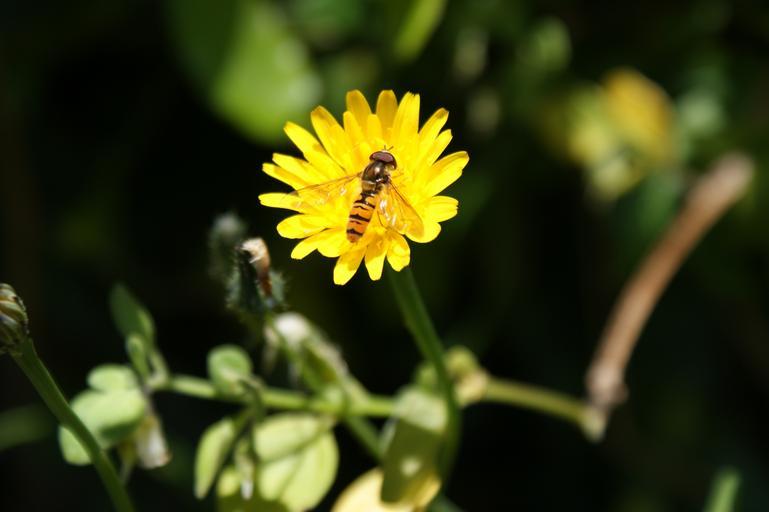 Keywords: hoverfly flower flower fly syrphid fly syrphus fly yellow blossom hover fly insect