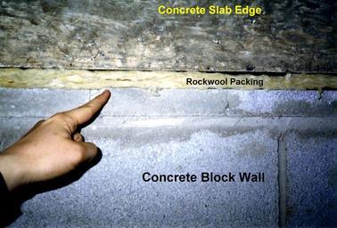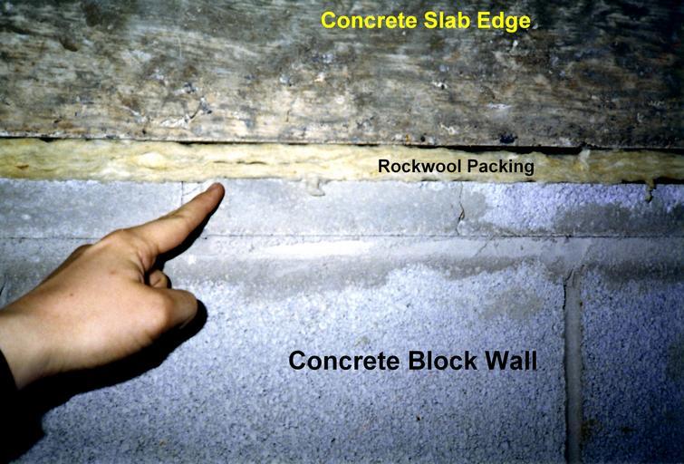 | Keywords: How joint.jpg HOW Head Of Wall Building Joint with incomplete firestop made of rockwool packing which still requires topcaulking own 2007-04-24 Achim Hering Firestops Thermal insulation Rockwool Construction materials Concrete Building joints Concrete blocks |