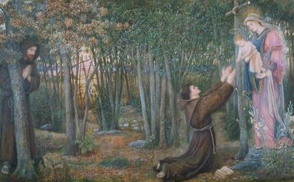 Keywords: How the Virgin Came to Brother Conrad in Offia and Laid her Son in his Arms, by Marie Spartali Stillman.jpg en How the Virgin Came to Brother Conrad in Offia and Laid her Son in his Arms watercolour gouache and gold paint on paper 49 5 × 80 cm signed b l MS 1892 1892 http //www wattsgallery org uk/en-gb/collections/poetry-beauty/ item-7236 Wightwick Manor The Mander Collection National Trust Creator Marie Spartali Stillman other versions Custom license marker 2016 08 30 PD-old-70 Paintings by Marie Spartali Stillman 1892 |