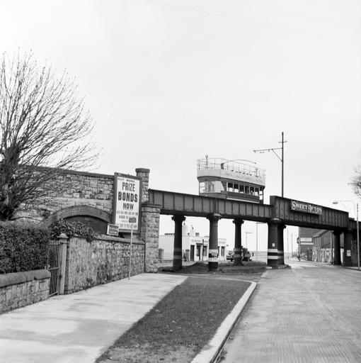| Keywords: tram elevated bridge elevatedbridge bridge advertising prize bonds prizebonds sweet afton sweetafton howth, co. dublin howthcodublin howth dublin 1959 1950s james p. o'dea jamespodea foot-paths footpaths harbour-town harbourtown british-architecture britisharchitecture electric-trams electrictrams findlater's findlaters clock gem the gem thegem national library of ireland nationallibraryofireland o'dea photographic collection odeaphotographiccollection blackandwhite monochrome outdoor road vehicle train locomotive building building structure infrastructure architecture black and white A tram crossing over the elevated road bridge at Howth, Co. Dublin. Thanks to A. P. Luckwill we have an exact location for this photo as that bridge is long gone, and he also said: "Parts of the original Howth Head tramway trackbed are still accessible on foot, from the top down, the path ends right at the point where this bridge once stood!" Date: March 1959 NLI Ref.: ODEA10/2 A tram crossing over the elevated road bridge at Howth, Co. Dublin. Thanks to A. P. Luckwill we have an exact location for this photo as that bridge is long gone, and he also said: "Parts of the original Howth Head tramway trackbed are still accessible on foot, from the top down, the path ends right at the point where this bridge once stood!" Date: March 1959 NLI Ref.: ODEA10/2 |