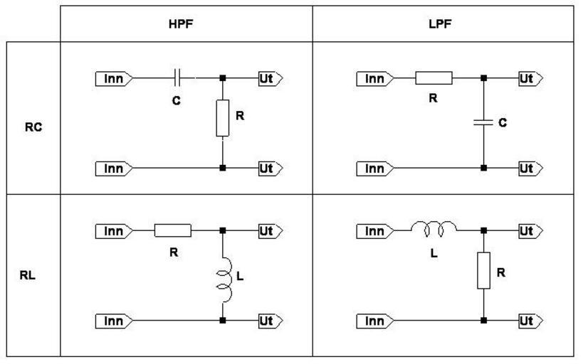 Keywords: HP LP RC RL NO.jpg en The four one-pole filter configurations Own WikiNO Bruker KjellElec 2008 Linear filters
